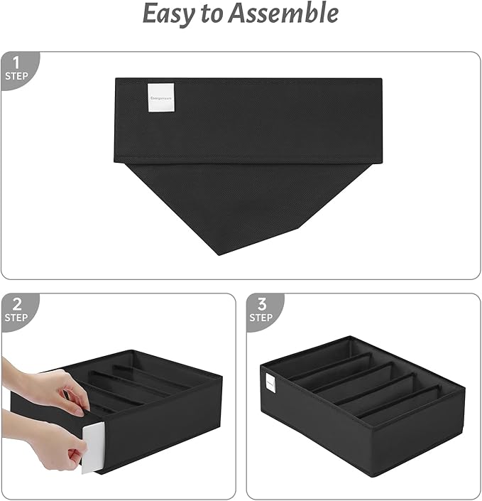- 【5 Grids Divider】Each wardrobe organizer is divided into 5 separate grids, one grid, and one item, which can keep your clothes and closet neat and tidy and easy to pick and place in a short time. Plus, the foldable and stackable design can greatly improve the utilization of wardrobe space.