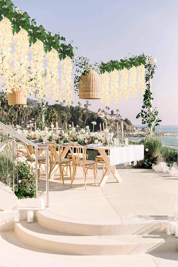 - Romantic Wedding Floral Decorations:Fake Lilac wisteria orchid hanging flowers looks real and stylish, perfect for wedding, home, patio, balcony, garden, indoor and outdoor, that usually used to decorate wedding arch,wedding centerpiece, flower wall etc adding elegance and romance to the celebration, create a venue where love blooms, make an impression on special day. It blooms all year and adds a sense of spring to your home