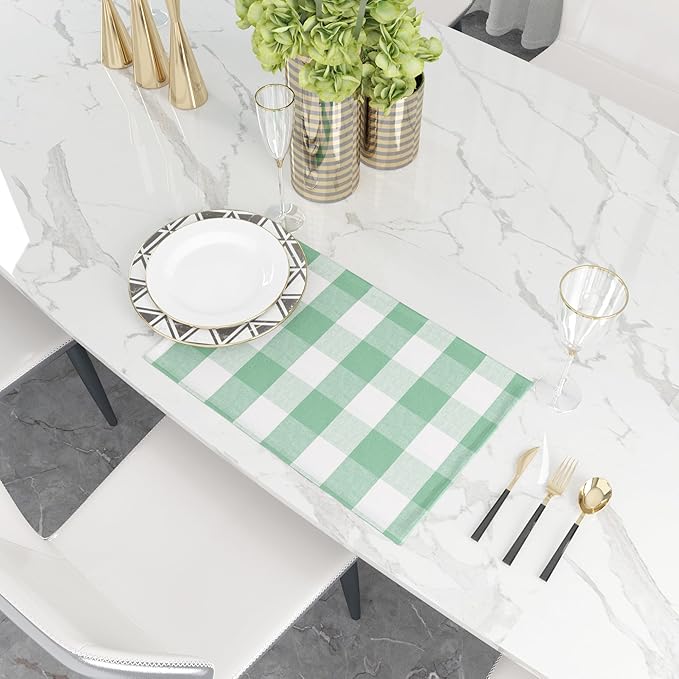 Green & White Placemats Cotton Buffalo Check Gingham Farmhouse Set of 4 Heat Resistant 2 Side Dining Table Place Mats for Kitchen Table, 12 x 18 inches