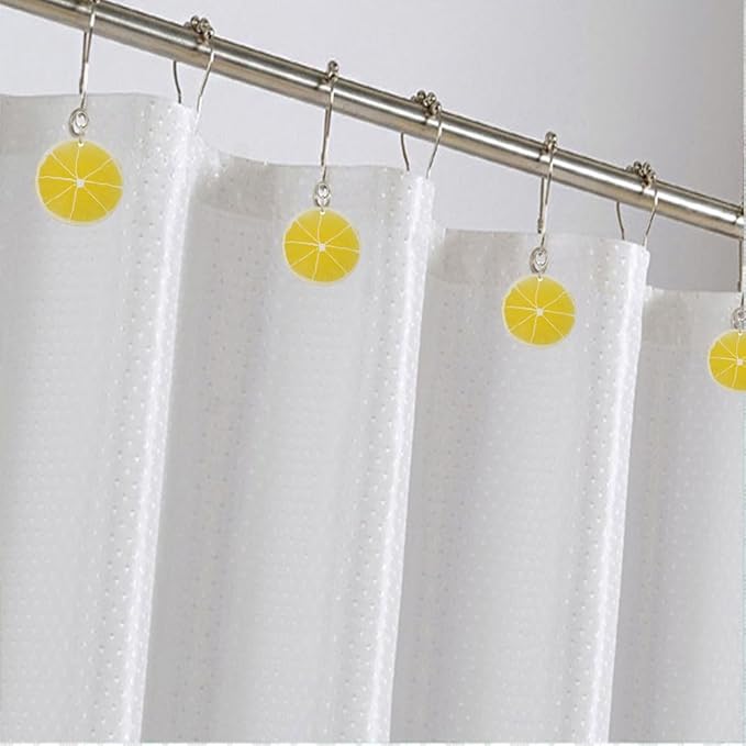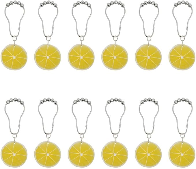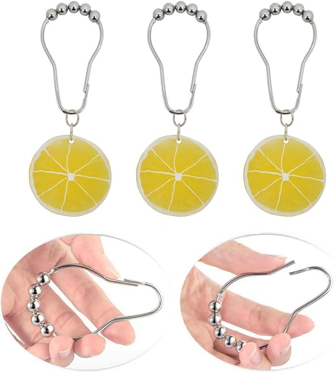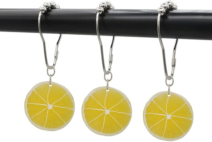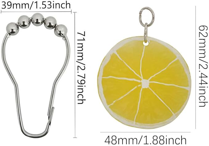 - QUALITY AND RELIABLE - Our rustproof shower curtain hook rings are made of high quality stainless steel, stainless steel is more rustproof durability than ordinary metal shower curtain hooks. it can be used for many years in a wet bathroom. Realistic resin lemon slice pendant