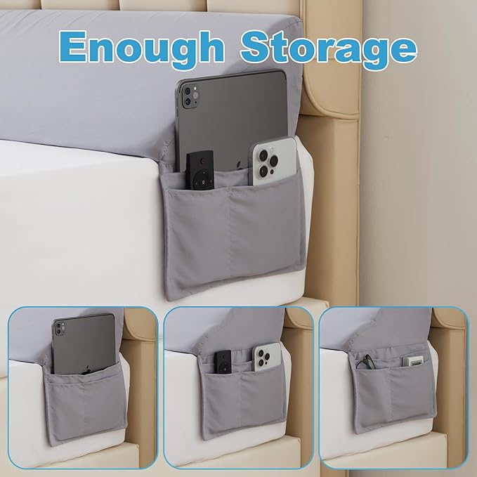 - Ample-Capacity Side Pockets: Equipped with spacious side pockets, this headboard pillow offers convenient storage for essentials like phones, remote controls, glasses. Keep your bedside oasis clutter-free and impeccably organized with this indispensable addition to your bed.