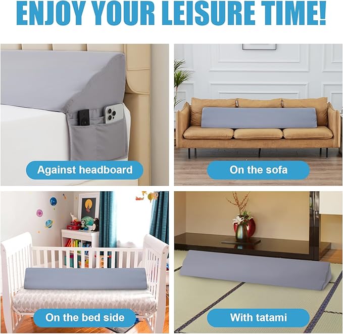 - Exceptional Support: Crafted with a distinctive curved foam design and high density foam, our bed wedge pillow for headboard guarantees exceptional support and maintains its shape for enduring comfort. This mattress gap filler ensures stability for sleepers, offering a restful night.