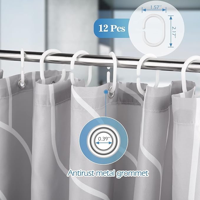 - Easy To Install: The shower curtain has grommets at the top to fit most standard shower hooks. Each Aimego bathroom curtain includes hooks. Using the top grommets and hooks, the bath curtain can be quickly hung on the rod and slide smoothly without jamming. Quick and easy removal when you want to clean or replace the shower curtains