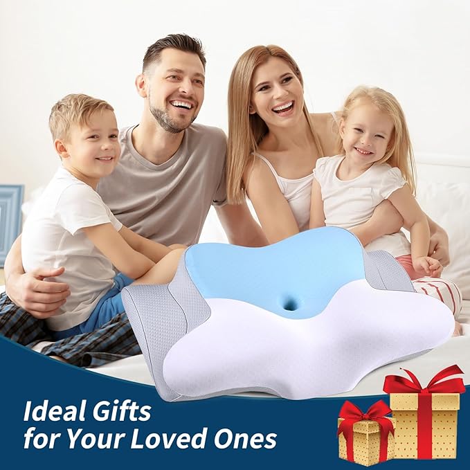 - NO MORE PAIN WHILE SLEEPING: Our ergonomically neck pillow combines traditional bed pillow and contour pillow. The hollow centre cradles the head, helps maintain the natural curve of the neck and shoulders perfectly, allowing the cervical spine to be more efficiently supported, stretched and relaxed. Healthy pillow to maintain good blood flow to your neck and head, relieve pressure and remove muscles tension. Choose us, choose better sleep and better life!