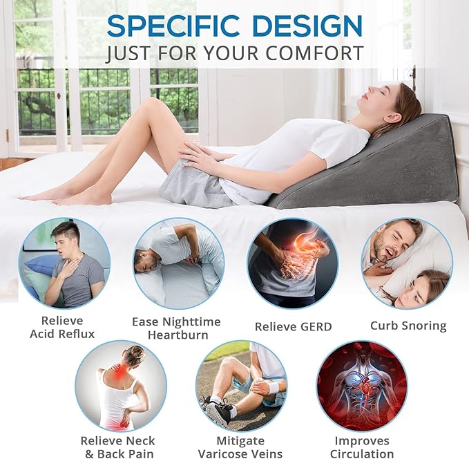 - Premium Material: Our wedge pillow for back pain relief features a 25D foam base for lasting support, topped with 40D slow-rebound memory foam that adjusts to your body's temperature, providing a 3-5 second rebound to relieve pressure effectively