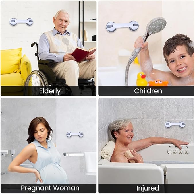 - ROBUST & RELIABLE: Made from durable plastic, CIVJET shower handles for seniors feature two strong suction cups for enhanced stability. They provide reliable support when using shower stools or chairs, ensuring a safer shower experience without the worry of slipping