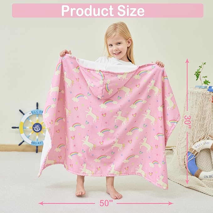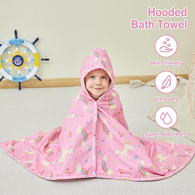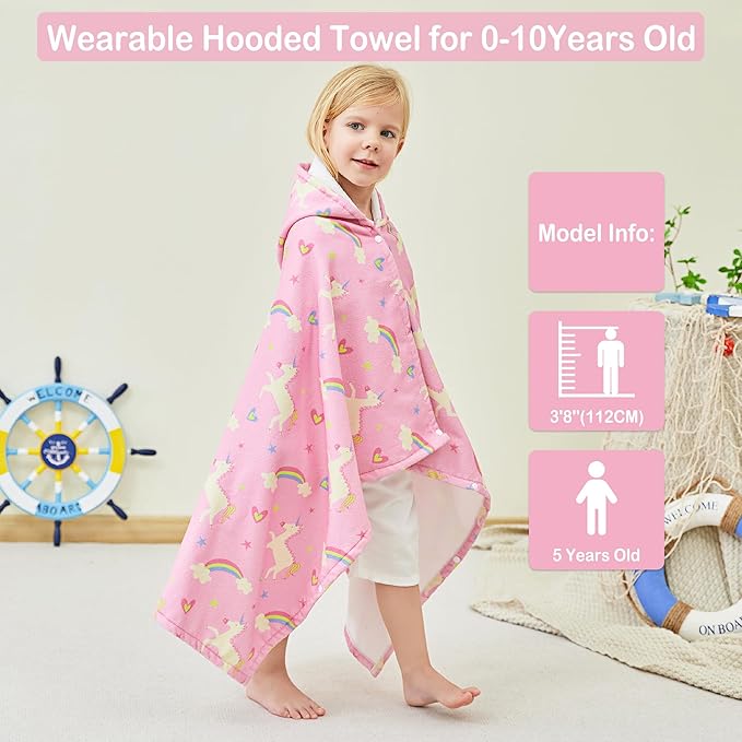 Kids Bath Hooded Towels, Kids Beach Towel for Boys Girls Super Soft and Absorbent, Beach | Pool | Bath | Swim Towels for Baby Kids Ages 0-8, 30X50 in, Unicorn