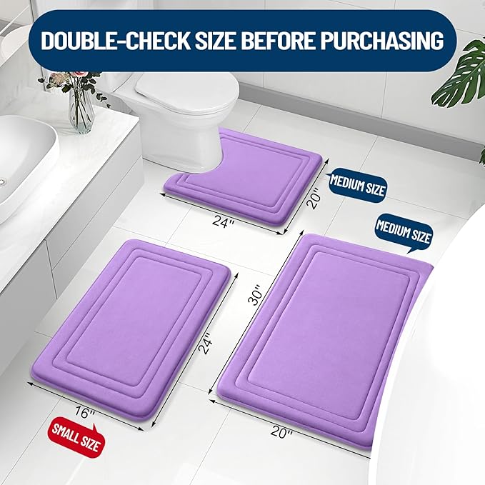 Grandaily Memory Foam Bath Mat Rug 30x20, Ultra Soft, Non-Slip and Absorbent Bathroom Rugs, Machine Wash Dry, Comfortable Bath Carpet for Bathroom Floor, Tub and Shower, Lavender