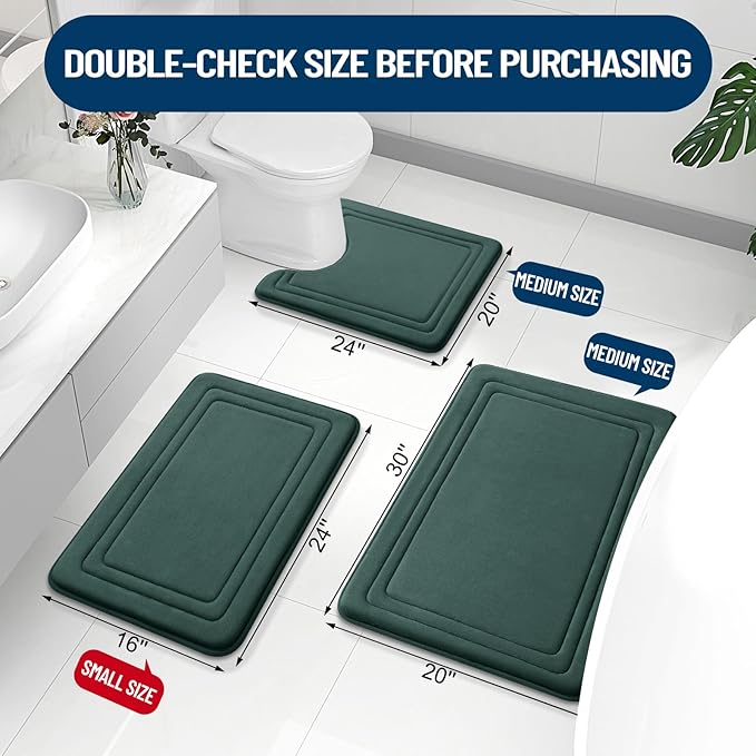 Grandaily Memory Foam Bath Mat Rug 30x20, Ultra Soft, Non-Slip and Absorbent Bathroom Rugs, Machine Wash Dry, Comfortable Bath Carpet for Bathroom Floor, Tub and Shower, Dark Green