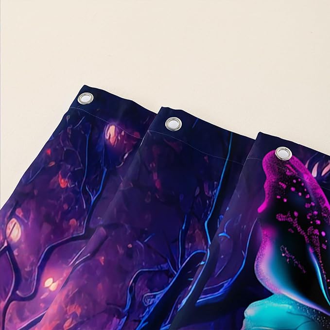 AILONEN 3D Tiger Shower Curtain for Bathroom,Purple Magic Forest Wildlife Printed Bath Curtain,Boys Roaring Tiger Decoration Shower Curtain Waterproof 72" W*96" H