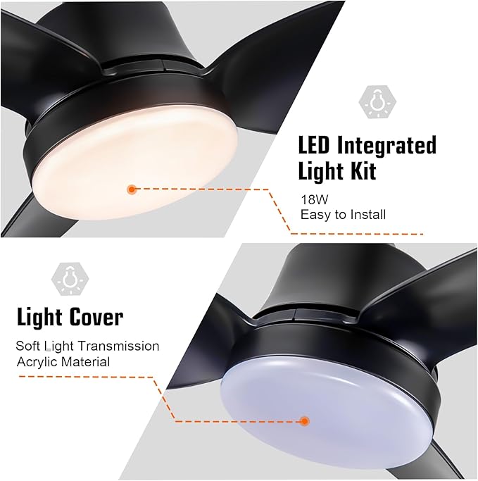 - 2. Customizable Lighting: This Ceiling Fan comes with a built-in light featuring 3-color dimmable options, allowing you to create the perfect ambiance for any occasion. Control it all with the convenient remote control included.
