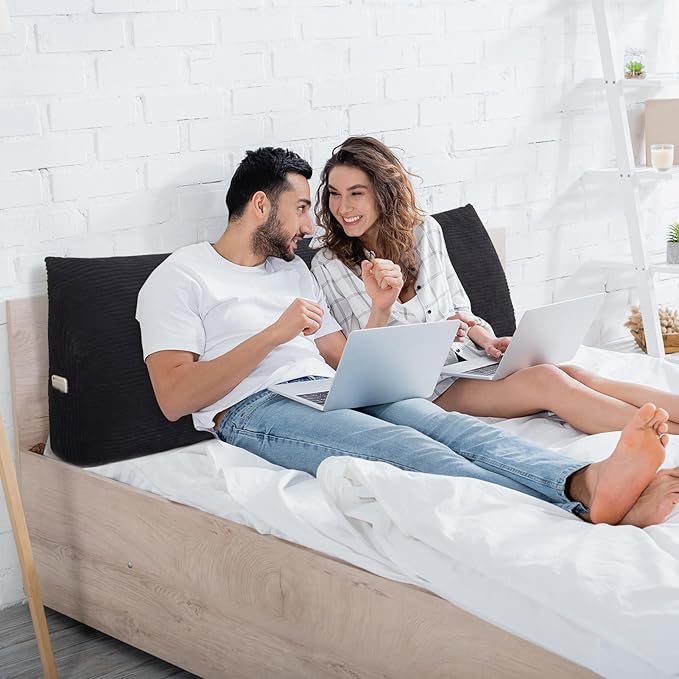 HIGOGOGO Wedge Headboard Pillow, Bed Rest Reading Pillow, Backrest Positioning Support Bolster Cushion with Removable Cover,King Size 76.8X20.4X8.4,Black