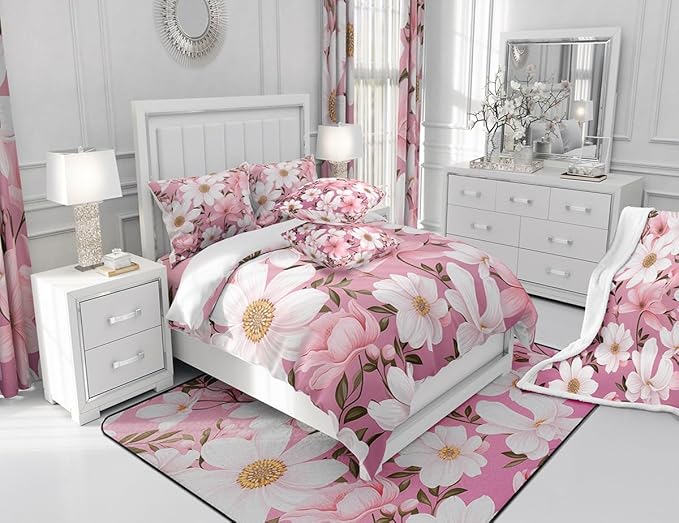 Feelyou Flower Fabric Shower Curtain for Kids Boys Girls Pink Floral Bathroom Waterproof Accessories with 12 Hooks Flower Botanical Shower Curtain Nature Plants Curtains,72x84 Inches