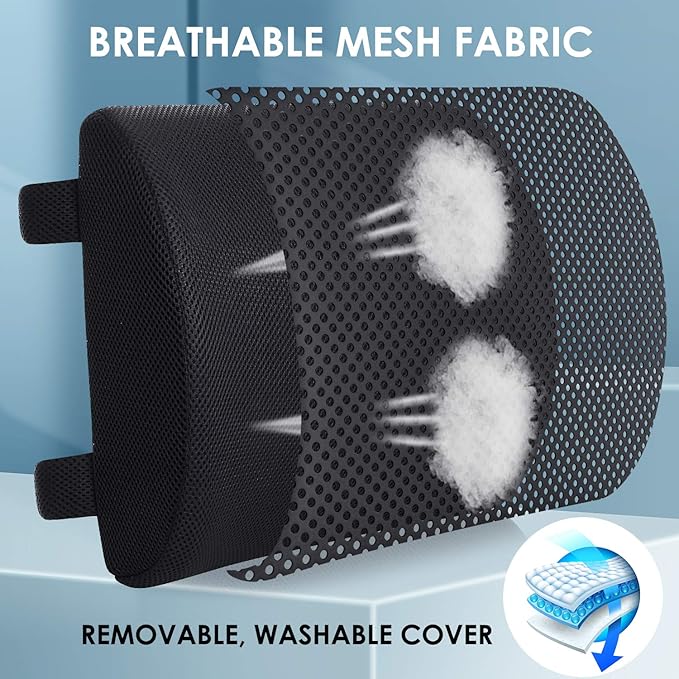 - BREATHABLE 3D MESH COVER: CompuClever back pillow for chair promotes air circulation, keeping you cool during long sitting hours. The chair pillow cover is removable and machine washable for easy cleaning. Try it now, don't worry. If for any reason our lumbar pillow doesn't work for you, please contact with via Amazon