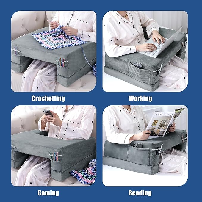 - 【Usage scenario】Adult armrest pillow, can be used as a lap desk for beds. It is very suitable for work, playing games, reading, watching TV, crochet, and more. Effectively alleviate fatigue and cervical discomfort caused by prolonged sitting or playing games. (Tips: The product is vacuum packed. After receiving the package, open it, gently tap it, and wait for 24-48 hours for it to rebound)