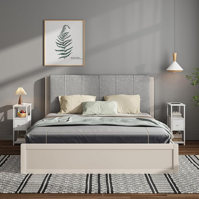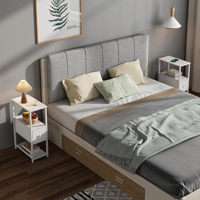 - [Ample Storage Space] The bedside table has a top shelf, open storage space and 1 large drawer. 3 tiers shelf provide ample space for phone, alarm clock, lamp, book, and coffee mug. Keep your room organized.