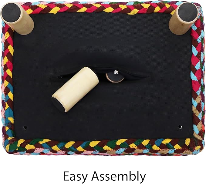- Handcrafted Design: This footrest features a unique, handcrafted braided cotton top, adding a rustic and stylish touch to any room. Each footrest features a one-of-a-kind multicolor braided cotton top, perfect for those who appreciate artisanal craftsmanship.