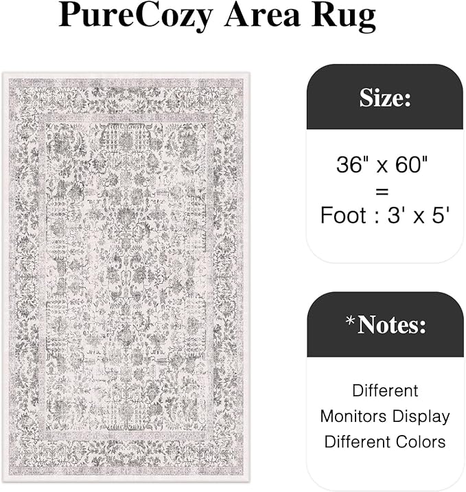 - Classic Vintage Style: PureCozy area rug has a trendy faded style and a unique retro pattern, tribal design blend perfectly with your home, suitable for the living room, bedroom, dining room, laundry room, entryway, kids' room, kitchen and office