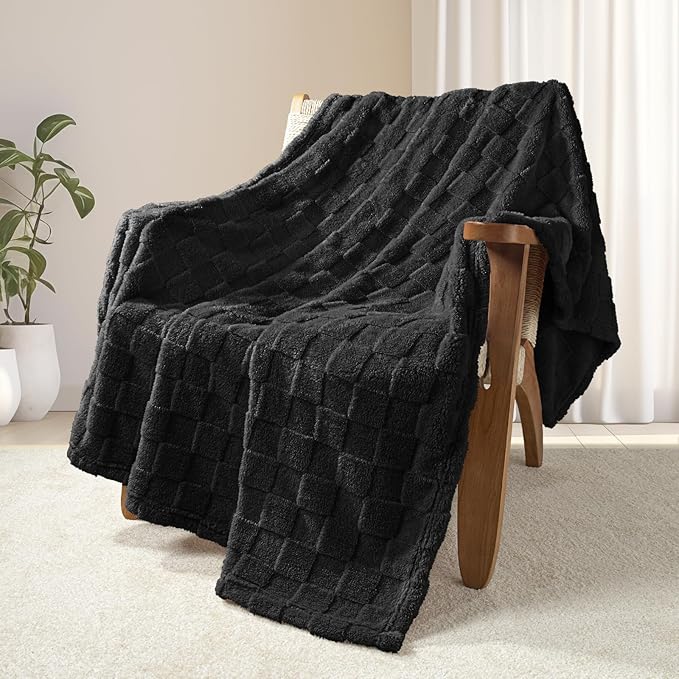 Exclusivo Mezcla Fleece Throw Blanket for Couch,Super Soft and Warm Lightweight Checkered Pattern Blankets for All Seasons, 50x60 Inches, Black