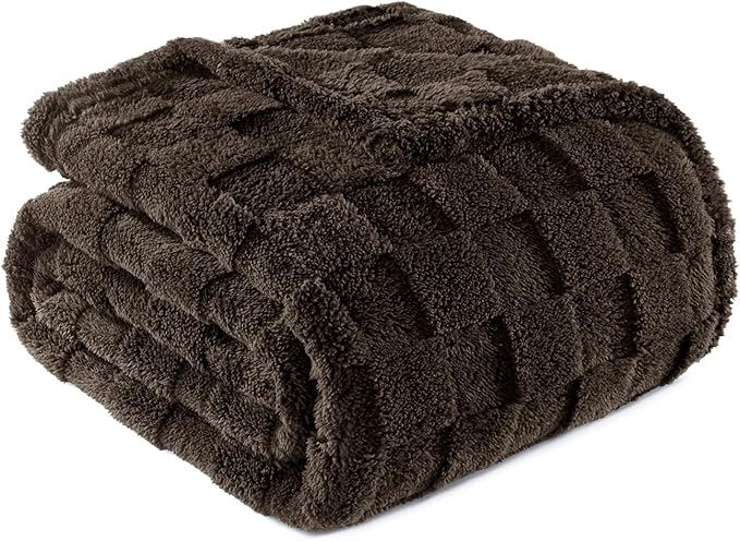 Exclusivo Mezcla Fleece Throw Blanket for Couch,Super Soft and Warm Lightweight Checkered Pattern Blankets for All Seasons, 50x60 Inches, Coffee