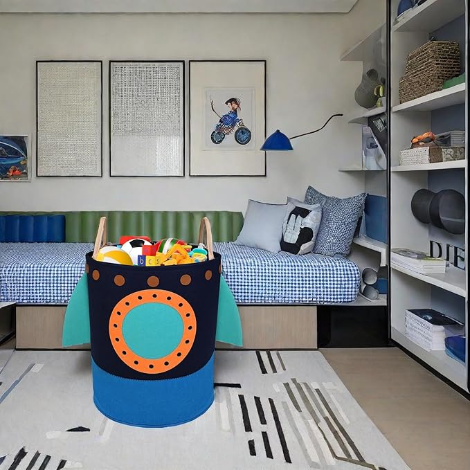 - Envy Of All Households: You will be a hero when instead of buying a standard laundry basket or toy bin you buy our adorable baby rocket.Imagine how much extra time you have when your child can`t help but tidy up with their new toy storage bins for kids. Our rocket kid laundry hamper can be used as a dirty clothes basket, toy storage box.