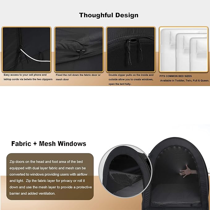 - ✔️ Stable & Durable - The privacy tent can pop up in 3 seconds. After simple assembly and placement in a suitable mattress,the bed tent structure is sturdy and stable, not easy to collapse. The double zipper design makes the zipper door open more smoothly.