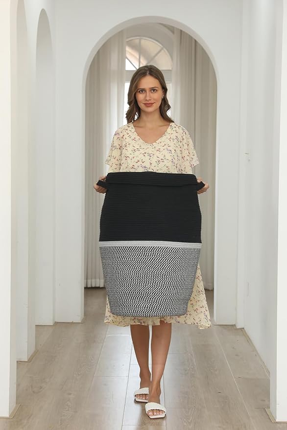 - ★ EYE-CATCHING DESIGN: this extra large woven basket is available in neutral color, warm touch, trendy look, aesthetic, easily match your decoration style for home, bedroom, family and craft room, or simply use as a laundry hamper.