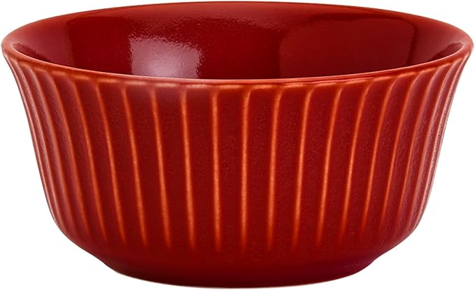 - Bright red dinnerware set with an embossed pattern, finished with a smooth and clear glossy surface, enhancing any table setting and food preparation