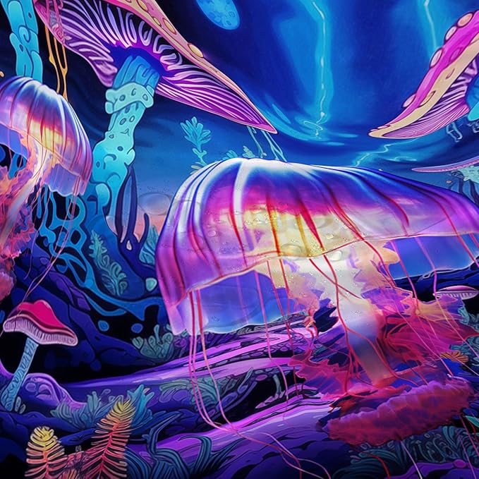 AILONEN Magic Mushroom Shower Curtain,Cartoon Jellyfish Shower Curtain Set for Bathroom,Natural Fungal Bathroom Curtain for Kids Girl,Boho Style Waterproof Fabric Bath Curtain with Hooks, 72" W*96" H