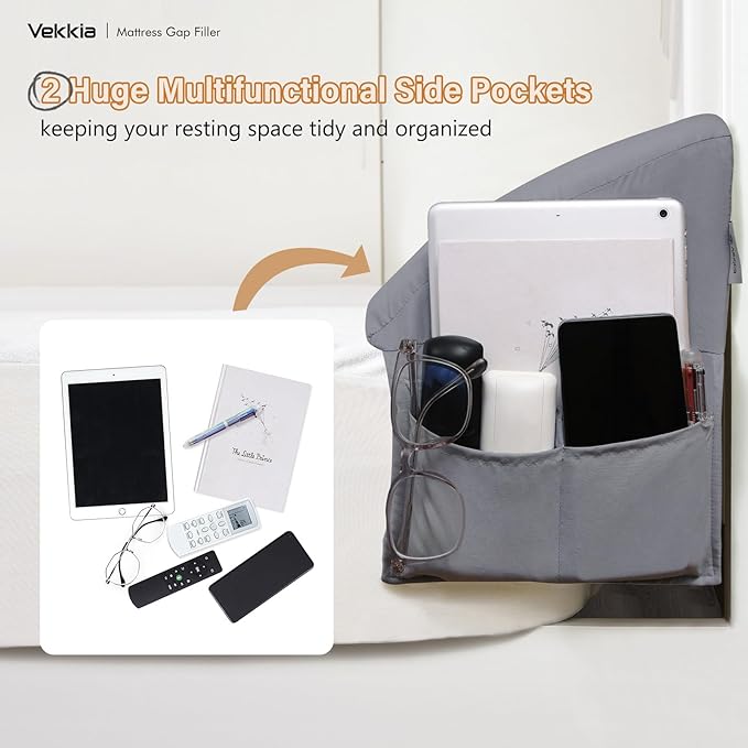 Vekkia Dual Density Bed Wedge Pillow/Mattress Gap Filler/Headboard Pillow/Pillow Wedge for Headboard Gap/Bed Gap Filler,Close Gap(0-6") Between Your Mattress and Headboard,Gray(Queen)