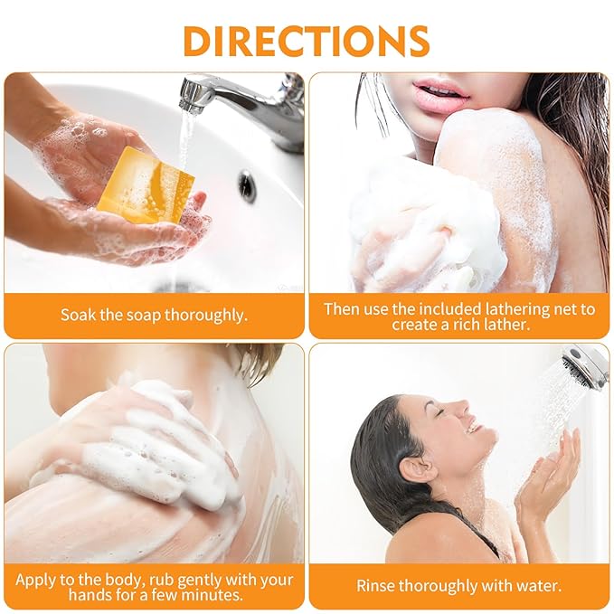 - DIRECTlONS - Soak the soap thoroughly, then use the included latheringnet to create a rich lather, apply to the body, rub gently with your handsfor a few minutes, rinse thoroughly with water.