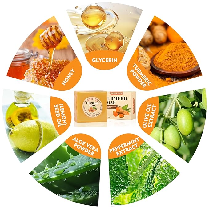 - NATURAL FORMULA - Lemon Turmeric Soap contains Aloe Vera, Honey, Peppermint Extract, Olive Oil Extract and other natural active ingredients to provide an all-natural skincare experience for sensitive skin.