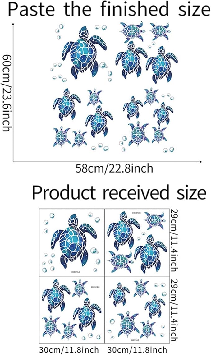 - 5. Customer Satisfaction: We are committed to providing you with the best product and service. If you have any questions or concerns, our friendly customer support team is here to assist you. Enhance your living space with our Turtles Wall Decal, Sea Life Wall Sticker today!