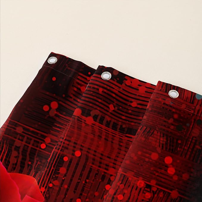 AILONEN Red Rose Shower Curtain for Bathroom, Romantic Rose Flower Bath Curtain,Grey Abstract Waterproof Floral Butterfly Print Shower Curtain Decoration with 12 Plastic Hooks, 36" W*72" H