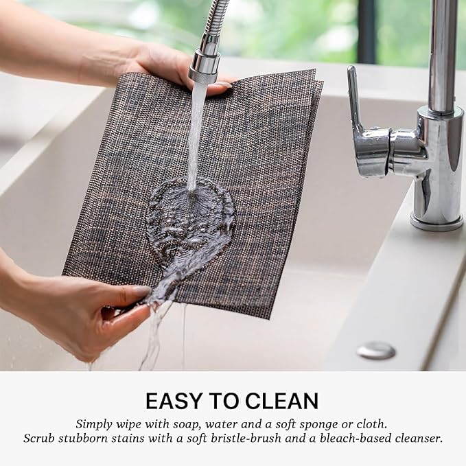 - HEAVY-DUTY: We uses the German-imported higher grammage vinyl material (Specialty PVC) than other placemats on the market, plus the precise, dense weave craftsmanship to give the woven placemats a thicker feel and make the place mats long-lasting.