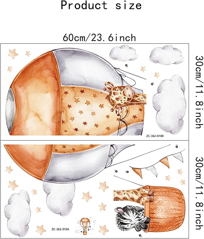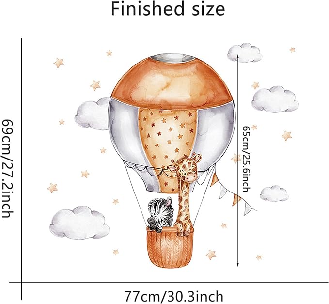 - 4. Versatile Decorative Options: These wall decals are not only great for walls but also suitable for furniture, mirrors, windows, and more. Create a playful and whimsical atmosphere in your home or classroom with these charming safari animal and hot air balloon designs.