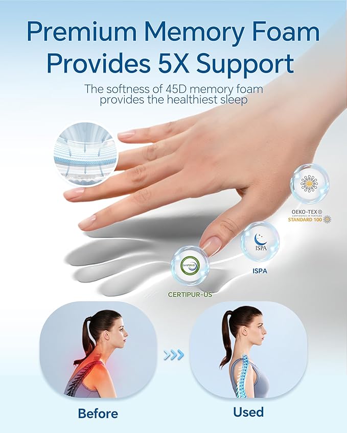 - PREMIUM QUALITY WITH CERTIFIED SAFETY: Crafted using a unique foaming process with mountain spring water, our pillows are naturally minimal in odor. Our orthopedic pillow meets the highest standards with Standard 100 by OEKO-TEX and CertiPUR-US certifications, ensuring it is free from harmful chemicals and safe for you and your family.