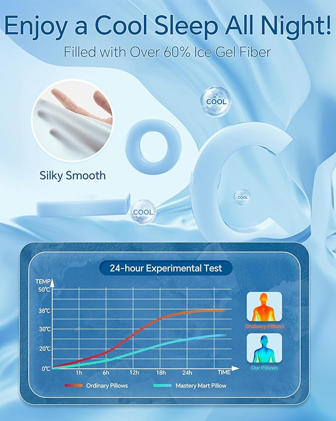 - COOL SLEEP AND COOLING TECHNOLOGY: Our cooling memory foam pillows feature silky cooling fabric with a Qmax value of 0.3 on one side, which provides an unrivaled cooling sensation upon contact, perfect for summer night comfort. The balance between coolness and breathability takes you to a cooling oasis during humid nights.