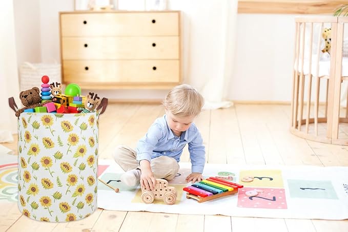 Girls Laundry Hamper,Sunflower Laundry Basket Collapsible Girls Storage Baskets for Home Decor,Office,Toy Organizer,(Sunflower)