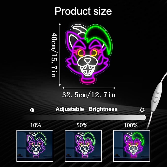 - Adjustable Brightness:This Roxanne Wolf neon light has a dimmer switch, you can choose the brightness according to your needs to meet your lighting needs at different times without causing damage to your eyes