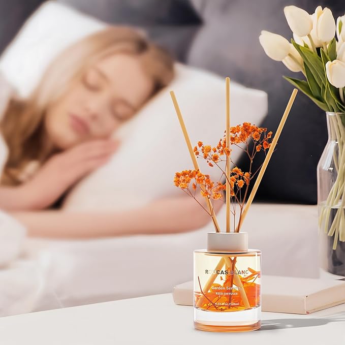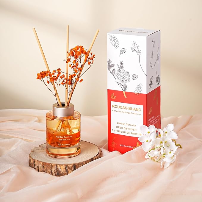 - Complete Package: The reed diffuser set includes a 4.22 fl oz glass bottle filled with a blend of essential oils and fragrance with natural botanicals immersed, a real preserved baby flower, and six pure cotton sticks. Customize the aroma intensity by adjusting the number of sticks used.