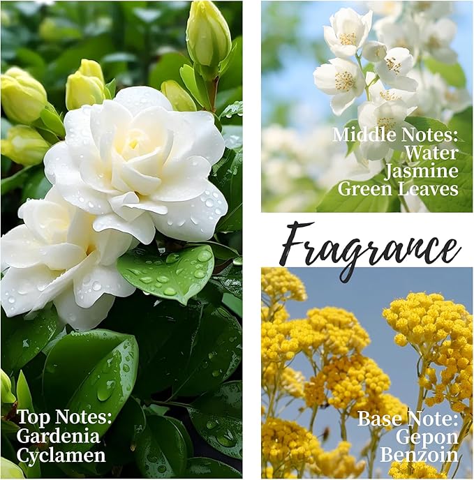 - Flower Scented Natural Essential Oil Diffuser: The ultimate allure of this floral fragrance is highlighted by the fresh essence of gardenia, blending with the aromatic jasmine, evoking a sensation of being in nature. It culminates with benzoin as its base note, emitting a faint woody scent that adds a lasting softness and warmth to the overall composition.