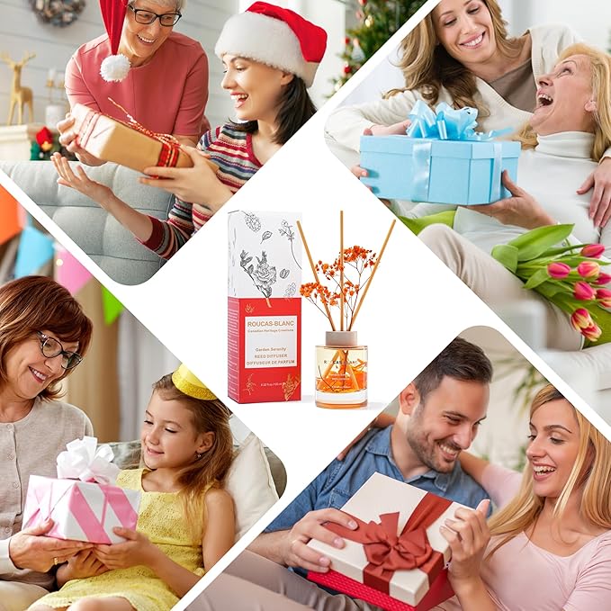 - Perfect Gift With Purpose: The gorgeous package design with foil flowers and appealing glass bottle with immersed botanicals inside, makes it an ideal gift for any occasion. Delight your family and friends with our thoughtful essential oil reed diffuser set for holidays, Christmas, birthdays, housewarming parties, dinner gatherings, or as a thank you gesture.