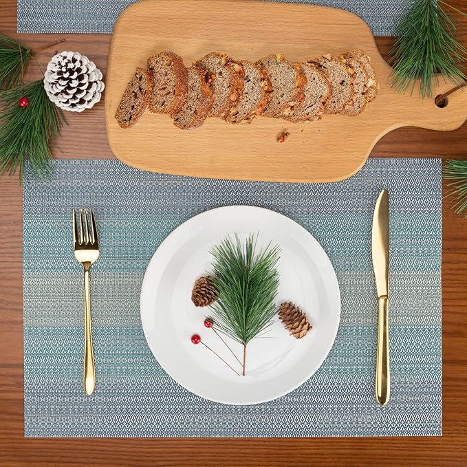 Winknowl Placemats, Set of 4 Heat Resistant Stain Resistant Woven Vinyl Insulation Placemats, Durable Washable Elegant Table Mats for Dining (Blue)