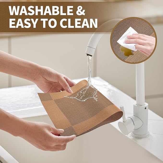 - 【Easy to clean】Our wipeable placemats are effortless to clean. Simply use a clean sponge, dishcloth or gently wash with a soft brush, or use soap, bleach-based to Wash with water, Breathable and easy to dry, can be reused repeatedly