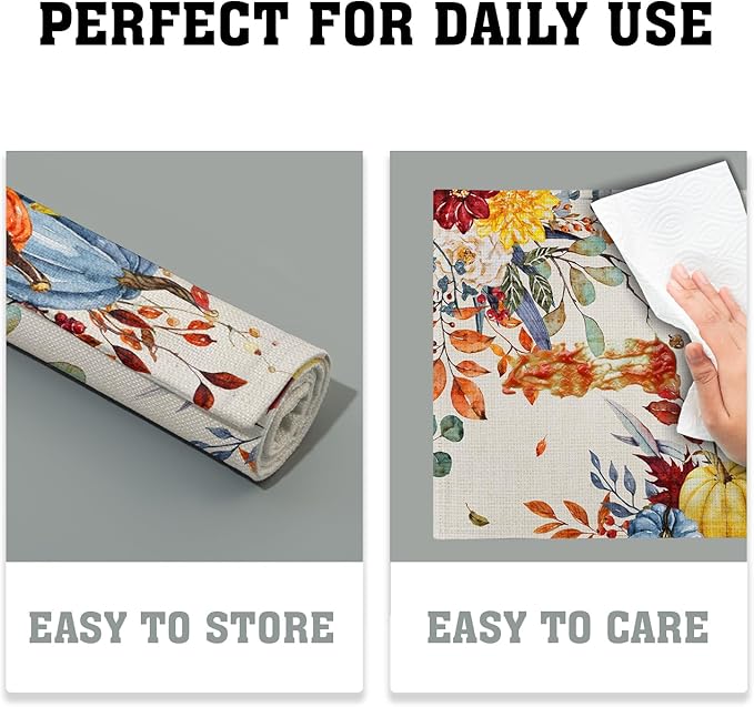 - Fine Performance: The autumn placemat measures 12x18 inch(30x45cm), including 4 pieces, fit in most table sizes. The exquisite printing process is personalized DIY printing design and customized personalized dining table collocation.