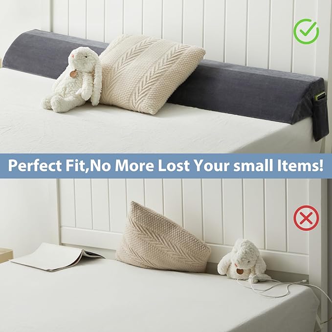 - Perfect Bed Gap Filler:Designed for gaps ranging from 0 to 8 inches, wedge pillow headboard not only fills the gap between the headboard and mattress, but also prevents items from falling out of bed, No more worries about losing your cell phone, remote control, books and other small items.