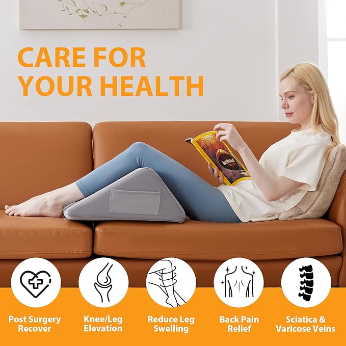 - Versatile Comfort for Every Occasion: From promoting blood circulation when supporting your knees to aiding post-surgery leg elevation, our knee wedge pillow offers multifunctional support. It's your all-in-one comfort companion, providing versatile relaxation and support for every moment of your life.