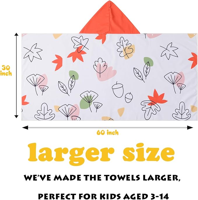 Kids Hooded Towels - Soft and Absorbent Bath, Beach, Swim Pool 30" x 60" Large Towel Cover Up for Boys and Girls Autumn Maple Leaves