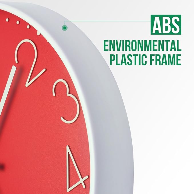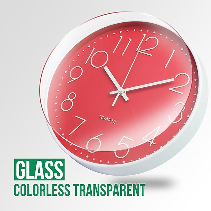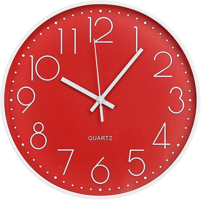 Wall Clock 12 Inch Non-Ticking Silent Modern Simple Style Round Decor Clock Red Stereoscopic Dial Quartz Wall Clocks for Home/Office/School/Living Room/Bedroom/Kitchen